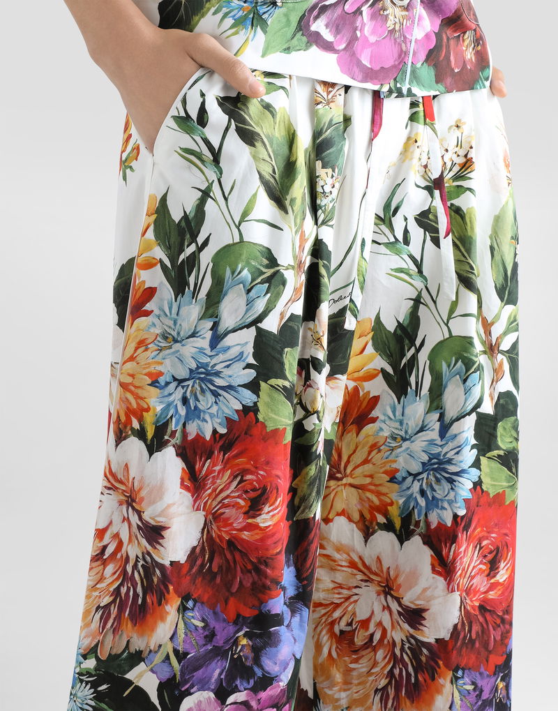 Flower Bouquet-print Poplin Trousers