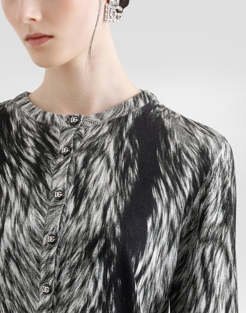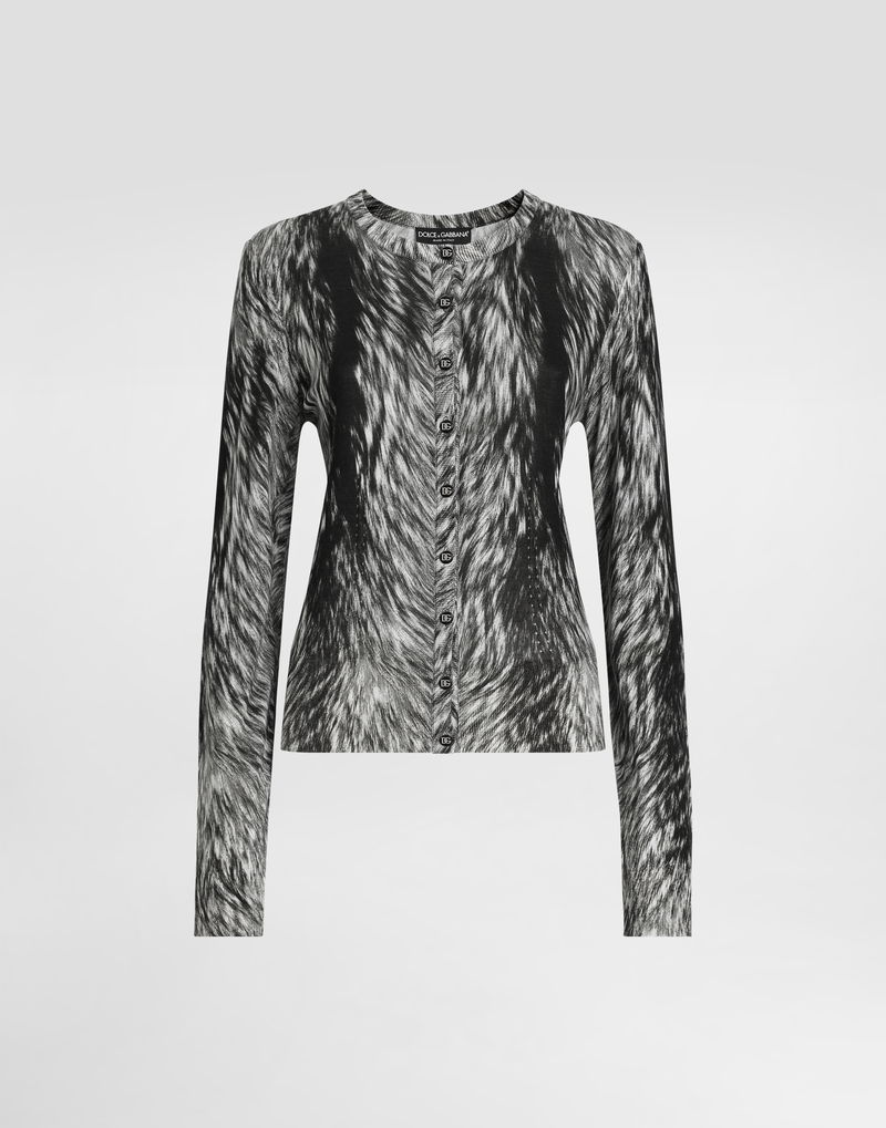 Fur-print Silk Cardigan