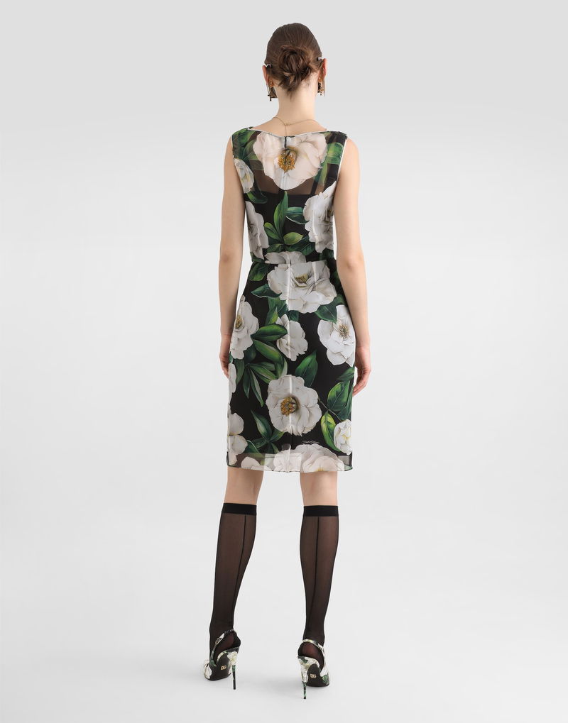 Gardenia-print Chiffon Midi Dress
