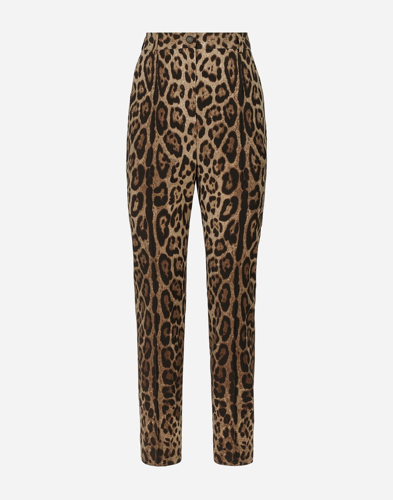 High-waisted Pants In Leopard-print Wool