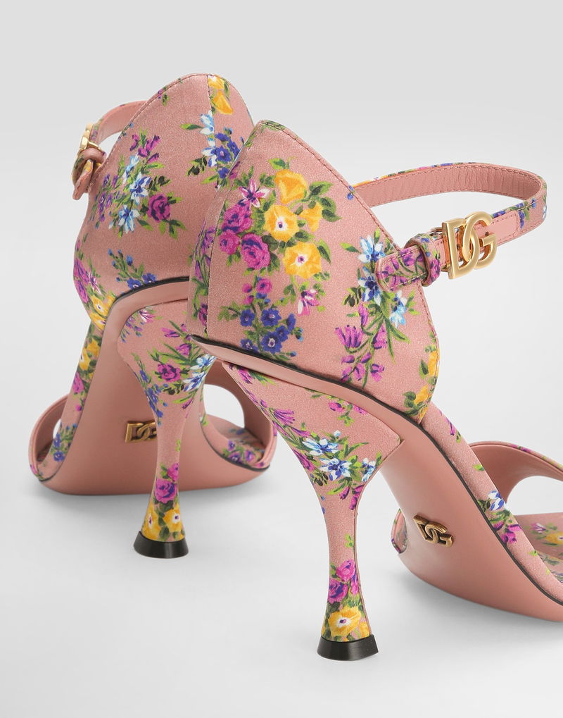 Satin sandals with little flowers print: Multi-colored Keira shape Leather outsole with DG metal logo Texon insole Printed leather open toe insole customized with label Antique Latin gold plating Heel height 105 mm Item equipped with a black cotton bag and a black embossed box Made in Italy The difference in the print placement that you may find on this product is a feature of Dolce & Gabbana’s “Handmade” pieces. A detail that makes every garment or accessory unique and exclusive.