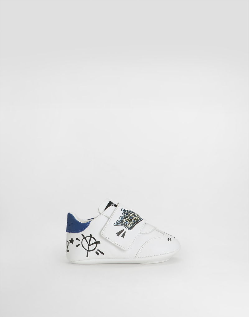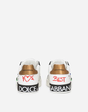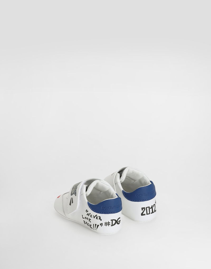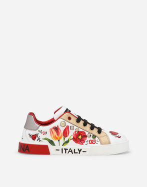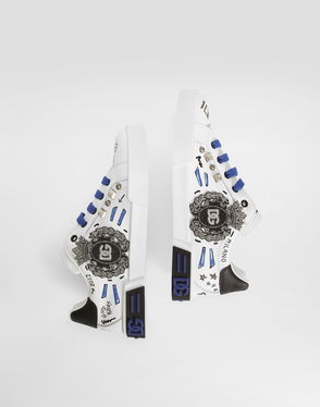 Lambskin sneakers: Multi-colored Leather outsole and insole Full leather insole customized with label Hook-and-loop closure Item equipped with a cotton bag and an assembled box Made in Italy The difference in the print placement that you may find on this product is a feature of Dolce & Gabbana’s “Handmade” pieces. A detail that makes every garment or accessory unique and exclusive.