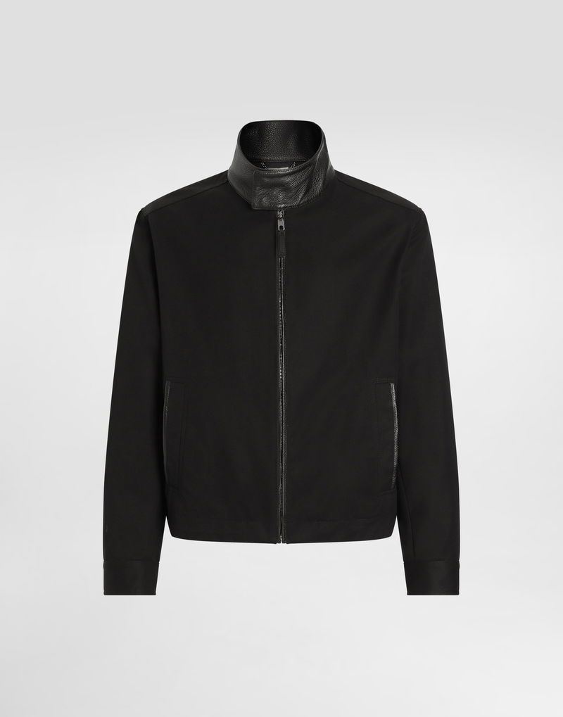 Leather And Technical Fabric Jacket With A High Neck And Tag