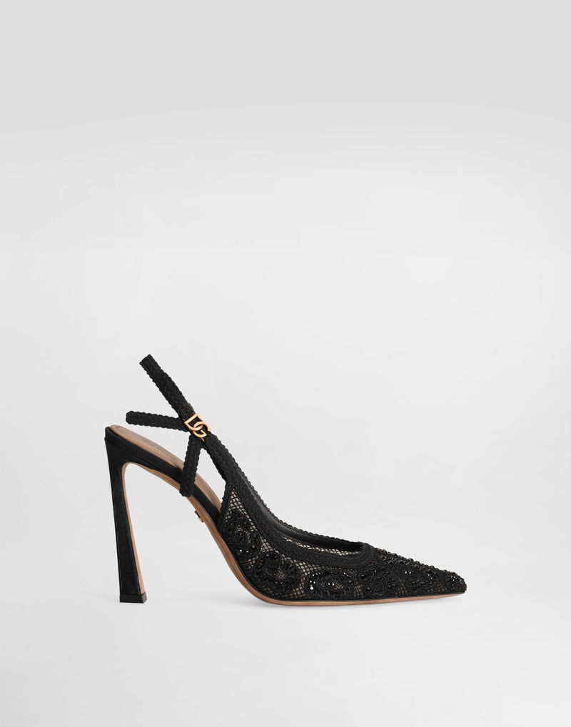Leopard-design Lace Slingbacks With Fusible Rhinestones