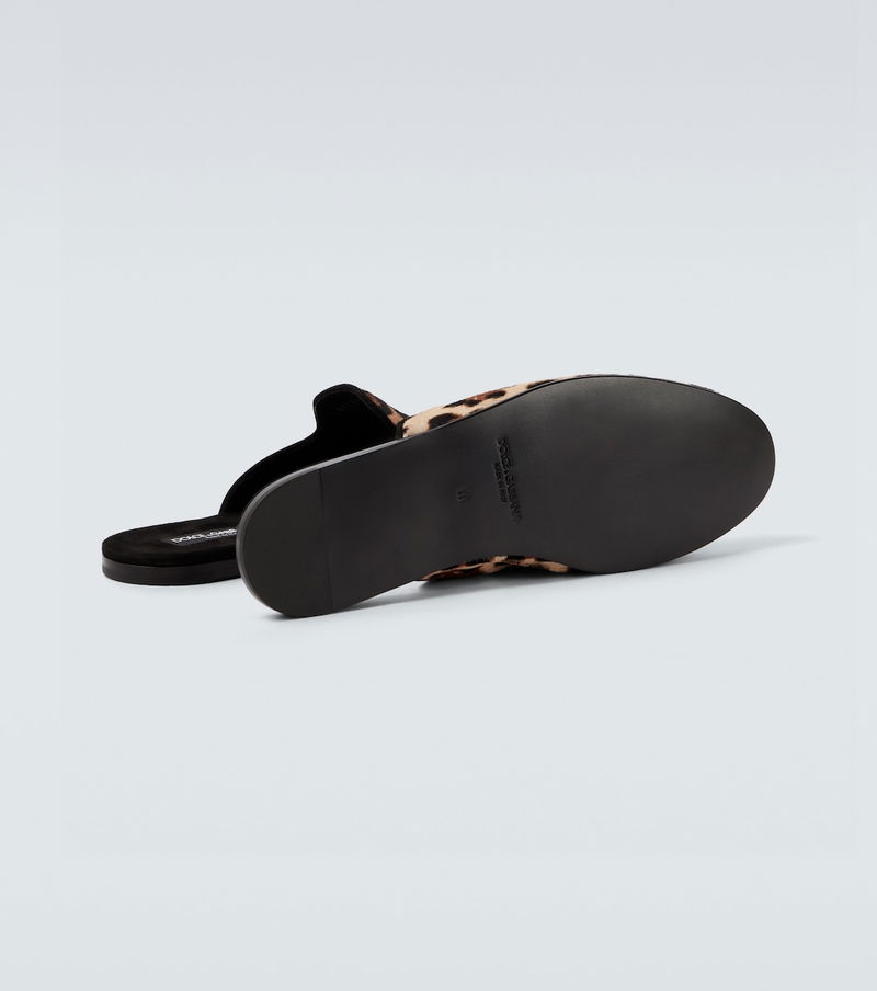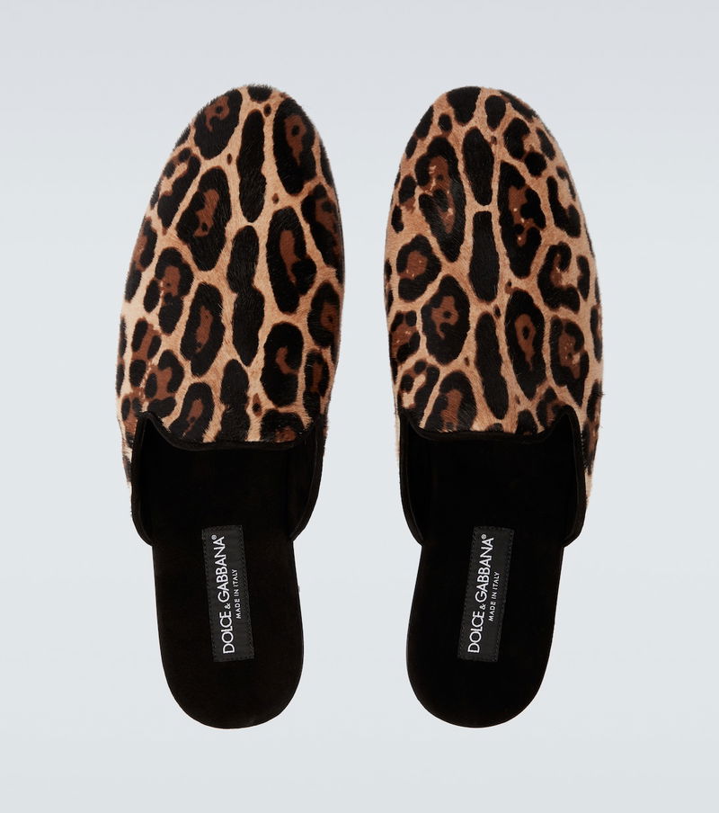 The iconic duo behind Dolce&Gabbana has been interpreting menswear through a Sicilian lens since the early '90s. These mules are made from calf-hair in an opulent leopard-print design.