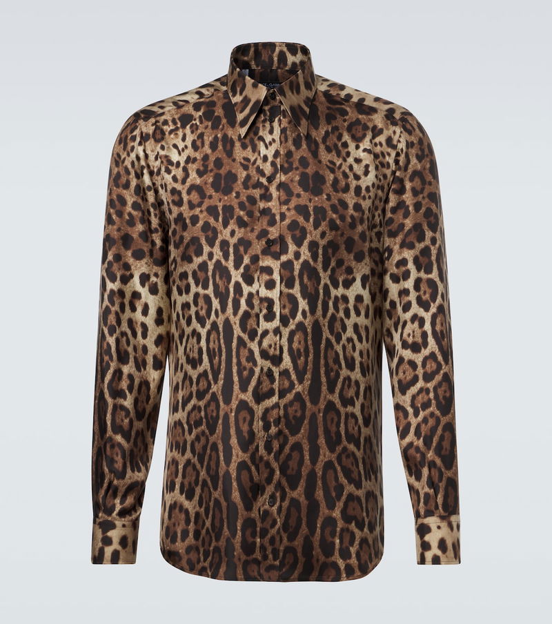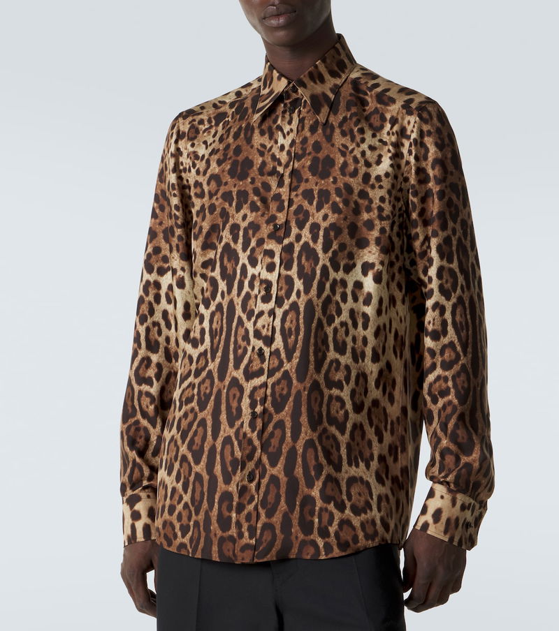 Sicilian culture is on display in Dolce & Gabbana's aesthetic, with bold styles inspired by the brand's Italian heritage. This silk shirt features a bold leopard-print pattern.