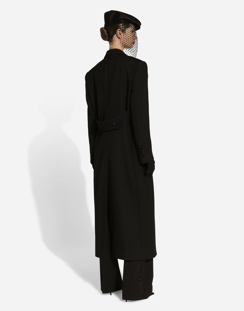 Long Double-breasted Tuxedo Coat In Double Wool Gabardine
