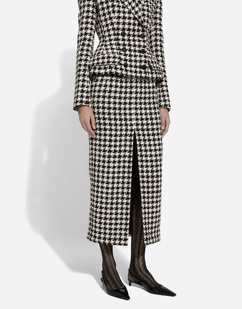 Long Macro-houndstooth Skirt