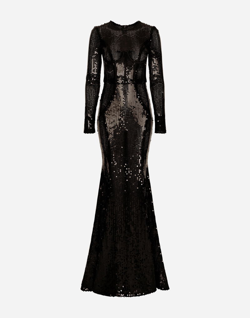 Long Sequined Dress With Corset Detailing