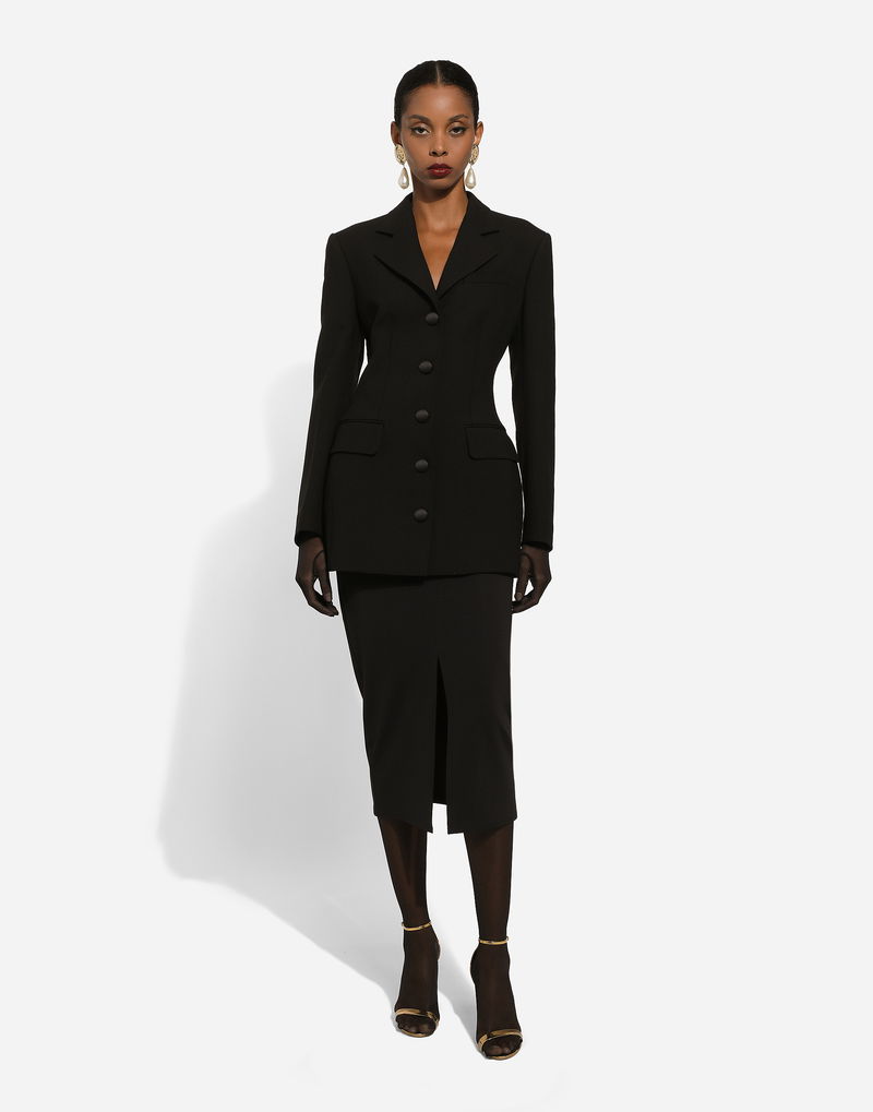 Long Single-breasted Wool Cady Dolce-fit Jacket
