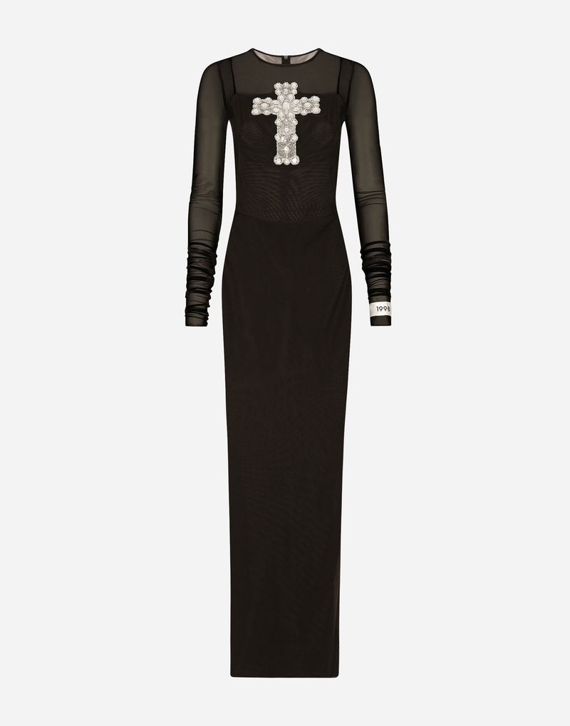 Long Tulle Dress With Rhinestone Cross Embellishment