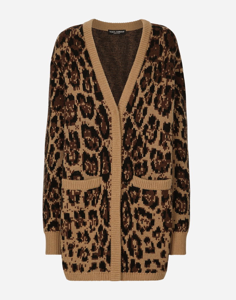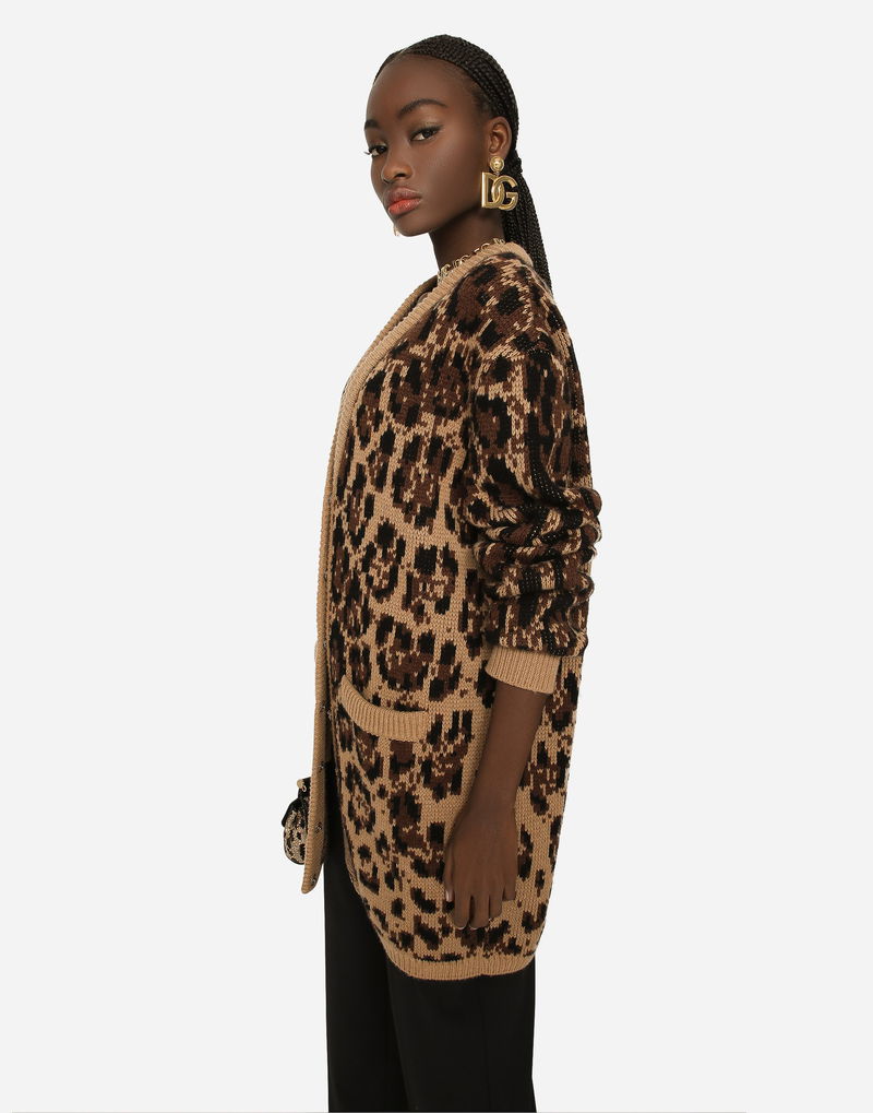 Long Wool And Cashmere Cardigan With Jacquard Leopard Design