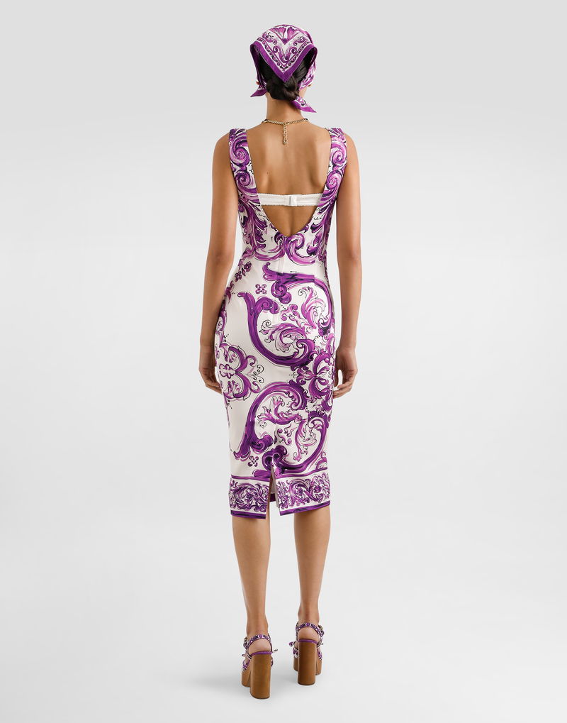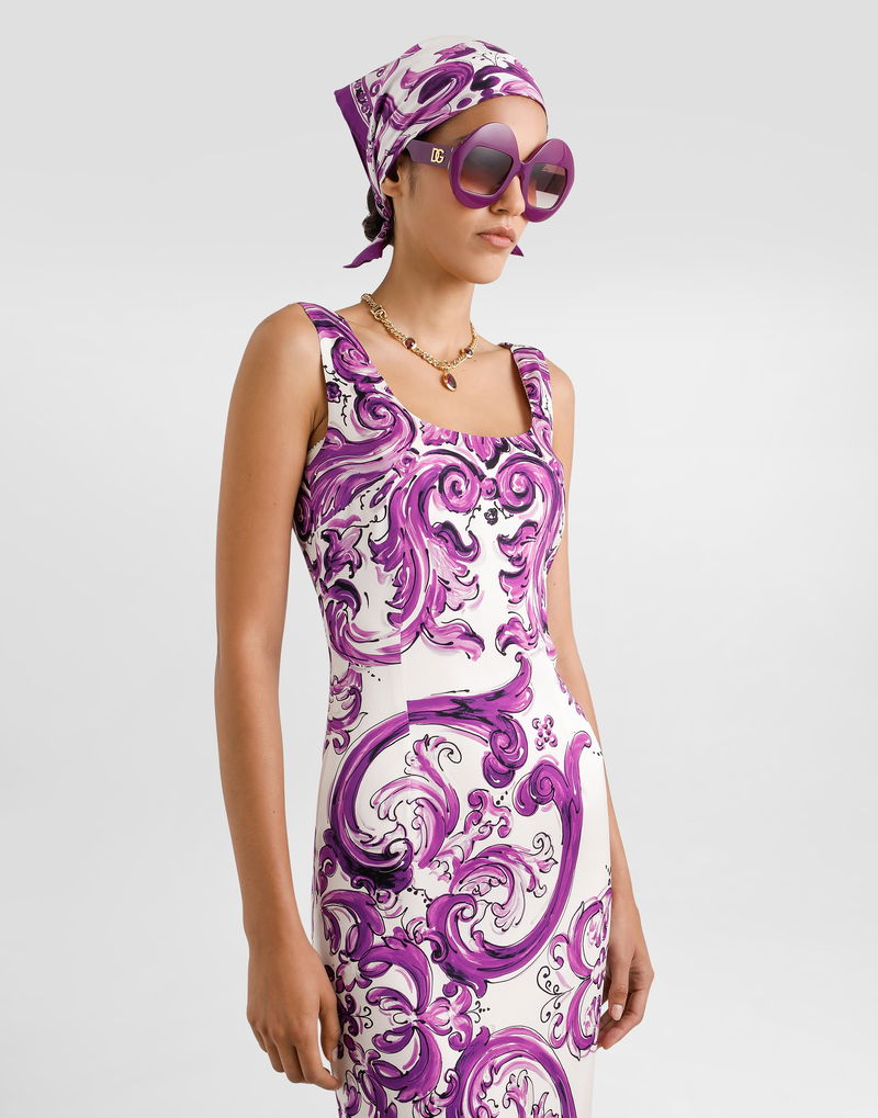 Majolica-print Long Charmeuse Dress