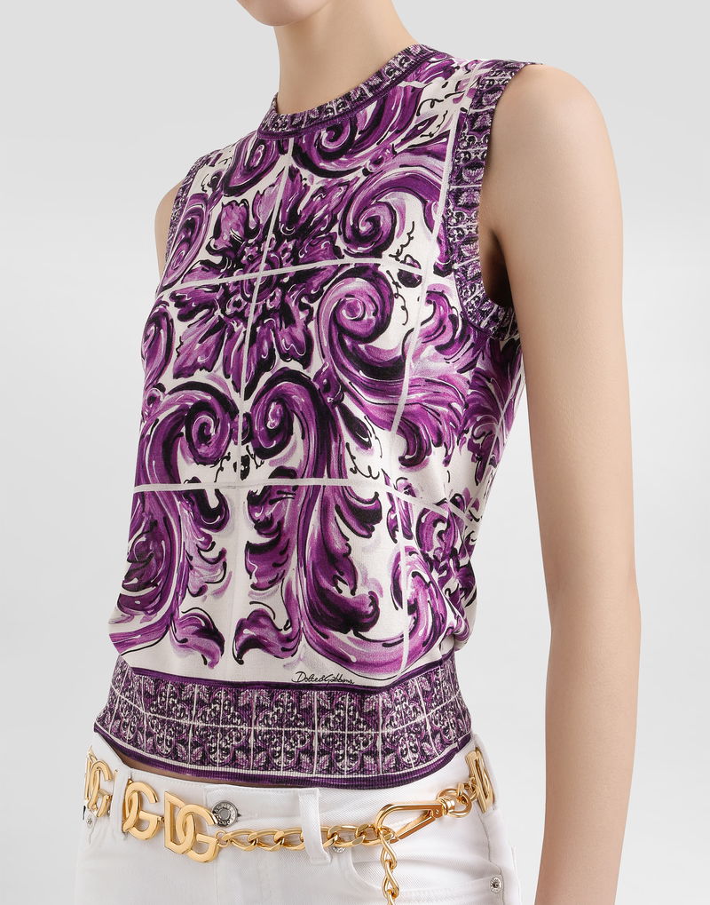 Majolica-print Silk Tank Top