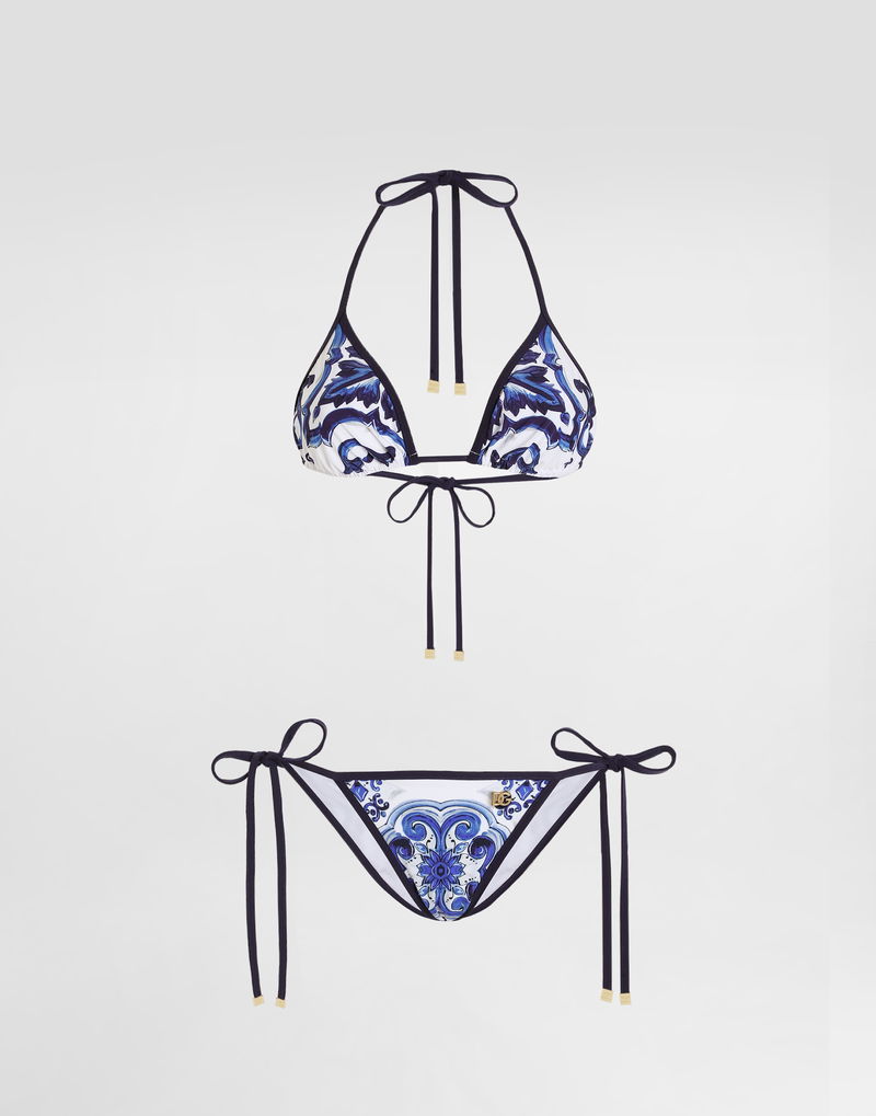 Majolica-print Triangle Bikini