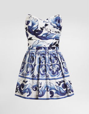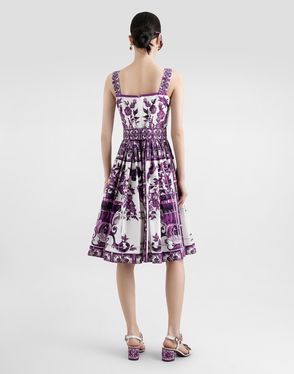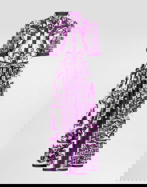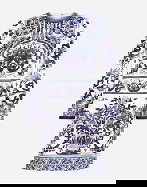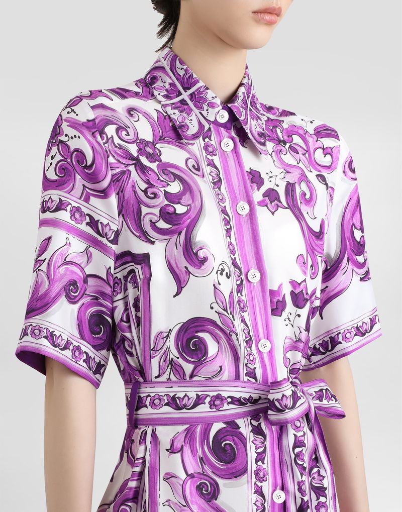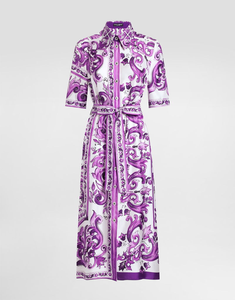 Twill shirt dress with Majolica print: Multi-coloured Short sleeves Side pockets Front closure with buttons Fastening belt at the front The model is 175 cm tall and wears size 40 IT Made in Italy The difference in the print placement that you may find on this product is a feature of Dolce & Gabbana’s “Handmade” pieces. A detail that makes every garment or accessory unique and exclusive.