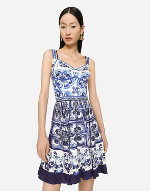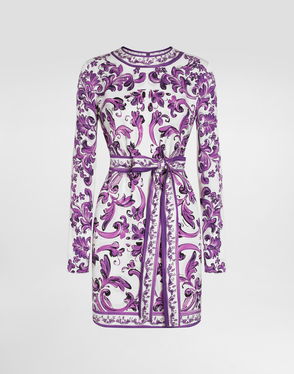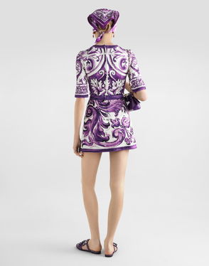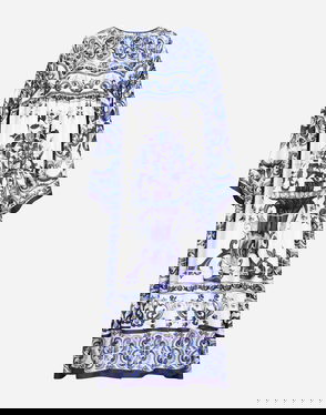 This Dolce&Gabbana beach dress exudes timeless elegance, ideal for a sophisticated seaside look. Crafted from silk twill and adorned with the signature Majolica print and self-ties, this piece captures the essence of Italian artistry.