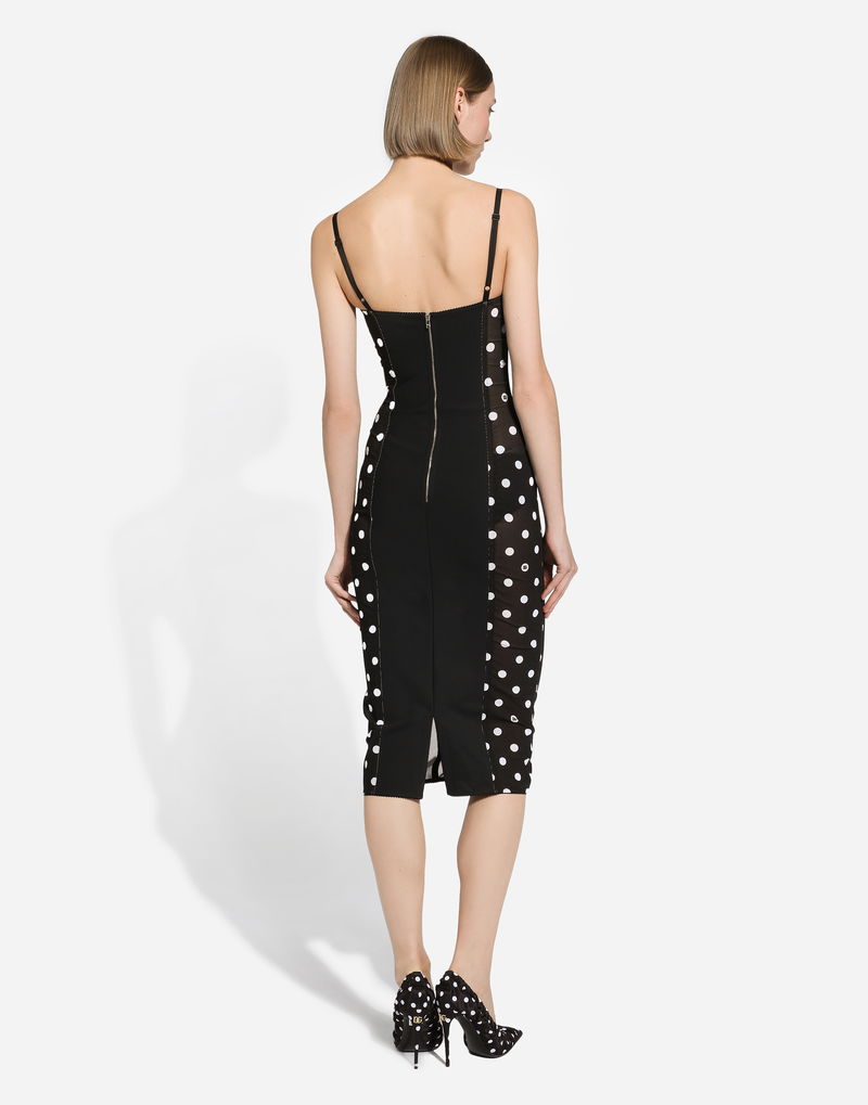 Marquisette Sheath Dress With Polka-dot Print And Corset Details