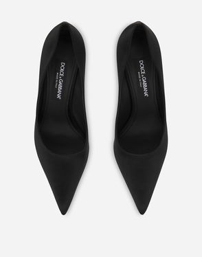 Dolce&Gabbana gives the classic black pump a contemporary twist with the mesh detailing. Made in Italy from leather, this style has pointed toes and sits atop classic stiletto heels that feature a golden logo detail.