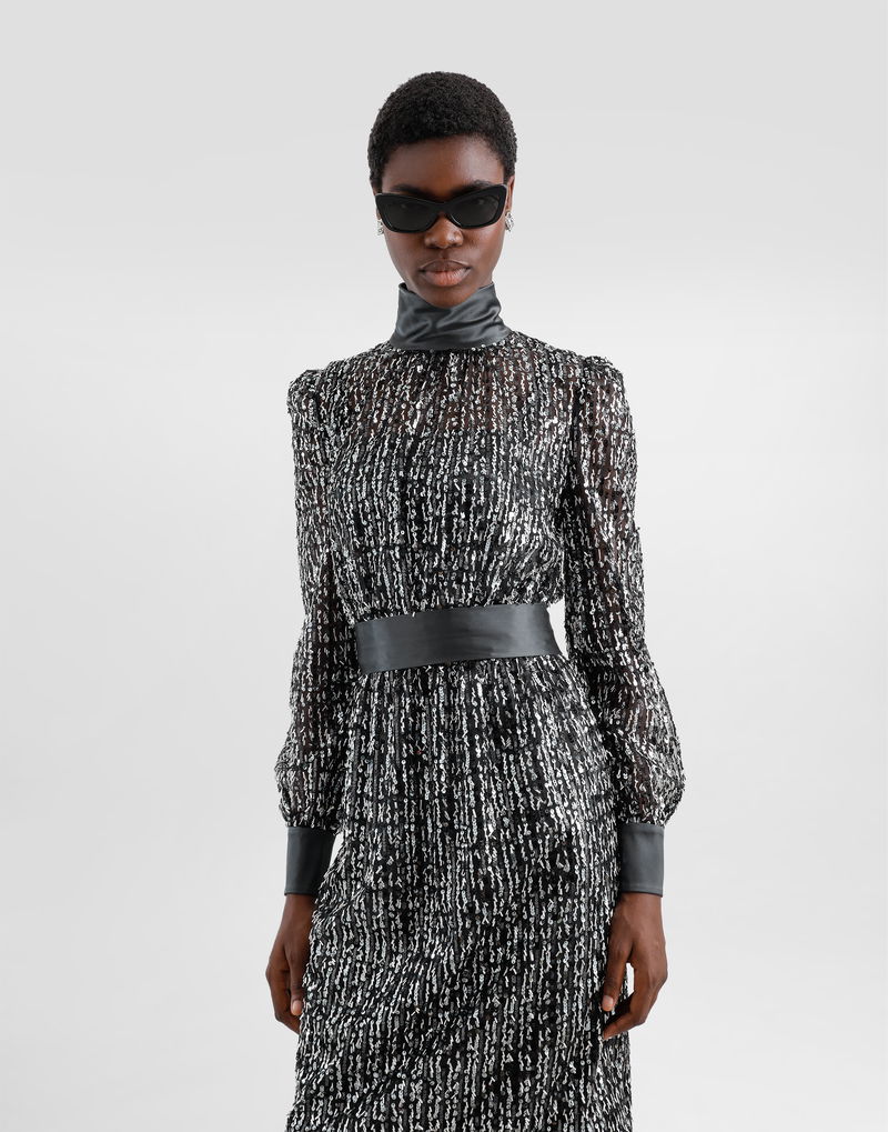 Midi Dress With Vertical Sequin Stripe Embroidery