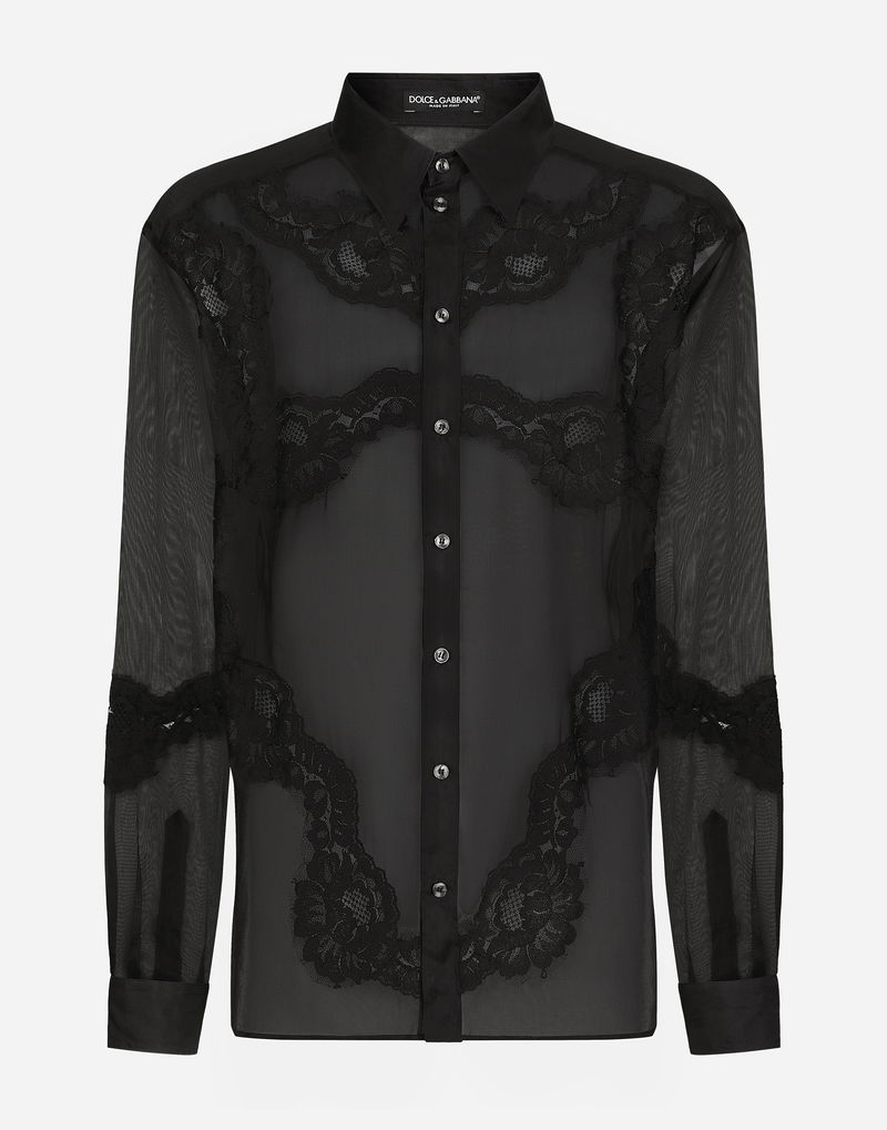 Oversize Organza Shirt With Lace Inserts