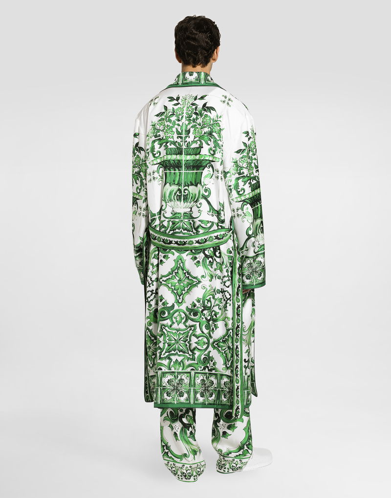 Oversize Silk And Yarn Shirt With Majolica Print