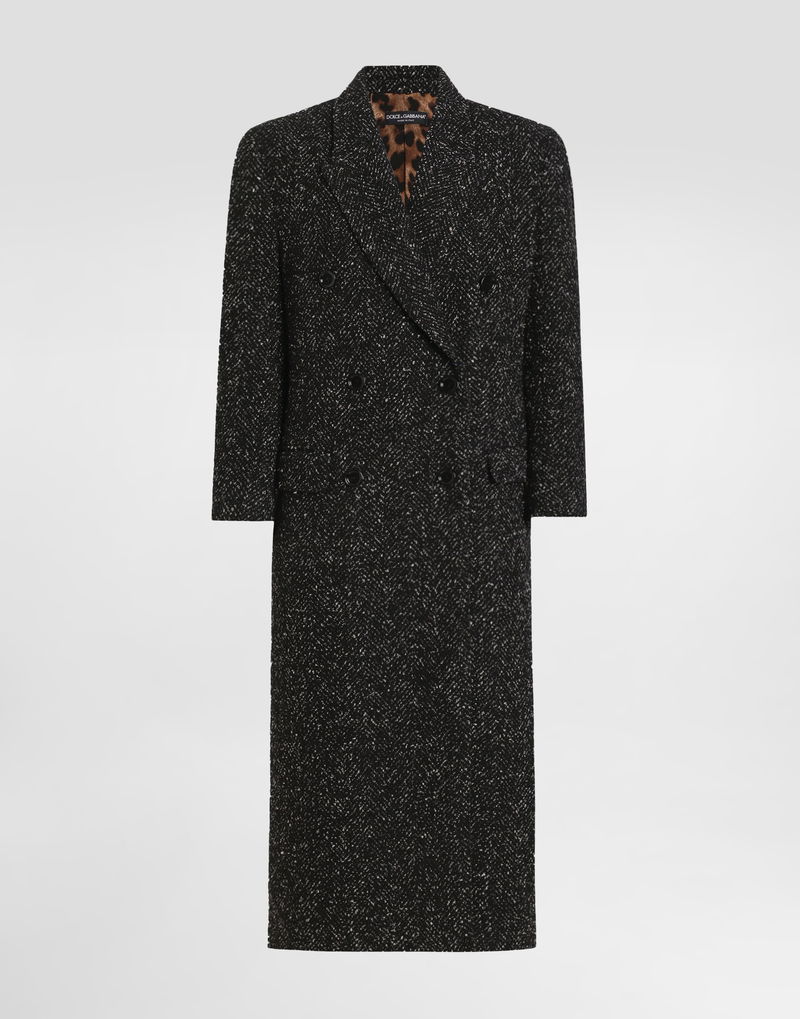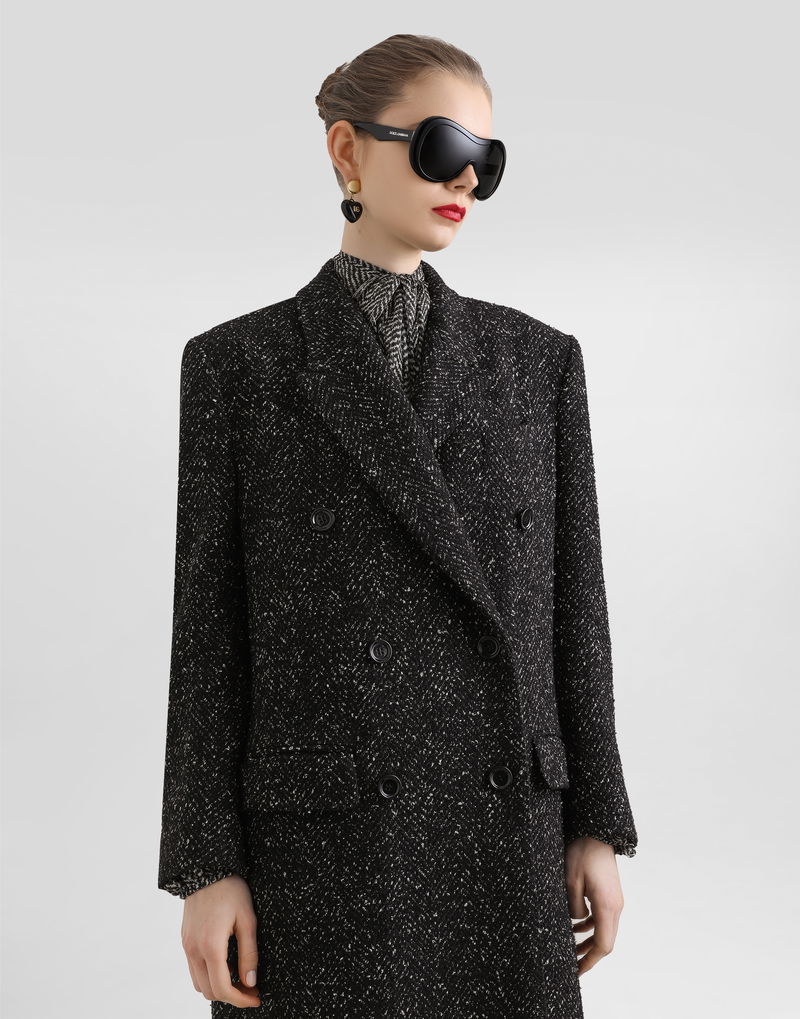 Oversized Double-breasted Coat In Wool Blend Chevron