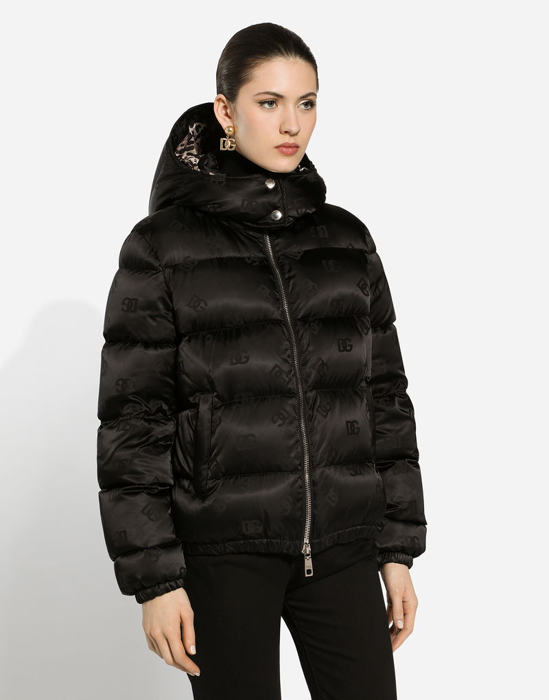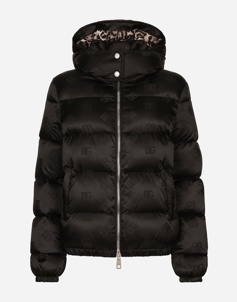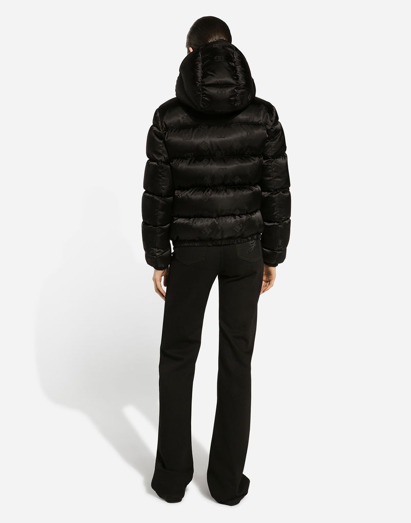 Padded Satin Jacquard Down Jacket With All-over DG Logo