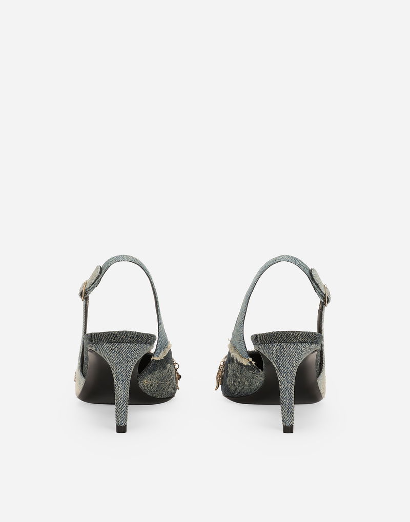 Patchwork Denim Slingbacks