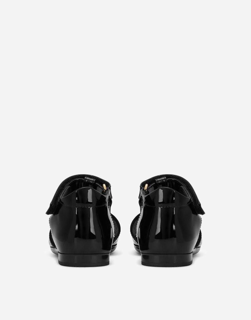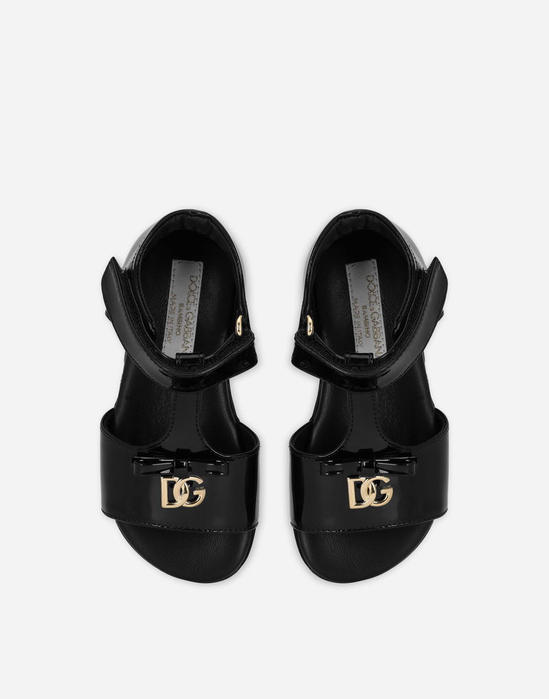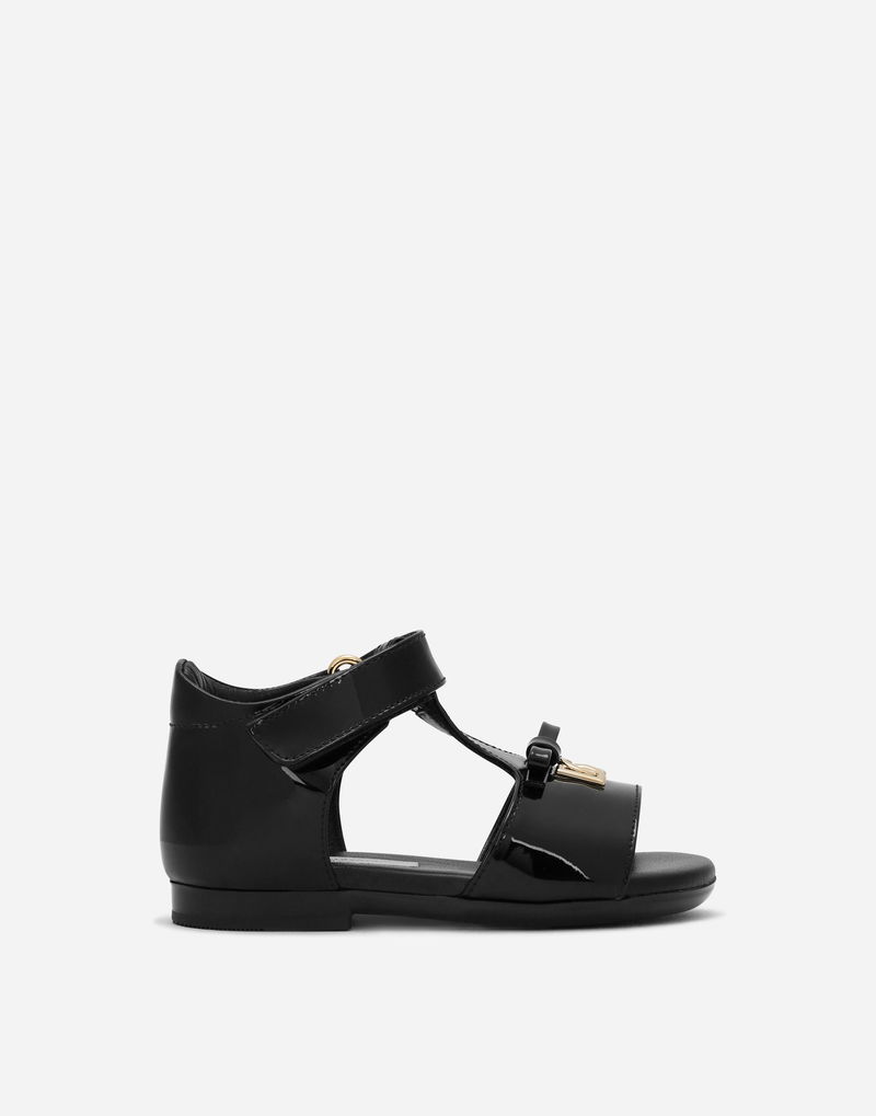 Patent Leather First Steps Sandals With Metal DG Logo