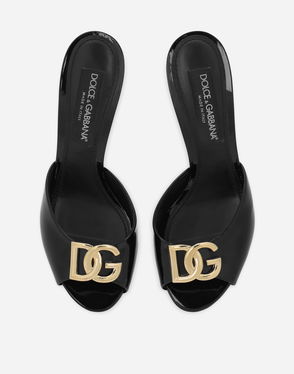 Complete looks on a glamorous note with these open-toe mules from Dolce&Gabbana. They're made from glossy patent leather and rest on 60mm heels adorned with gold-tone DG hardware.
