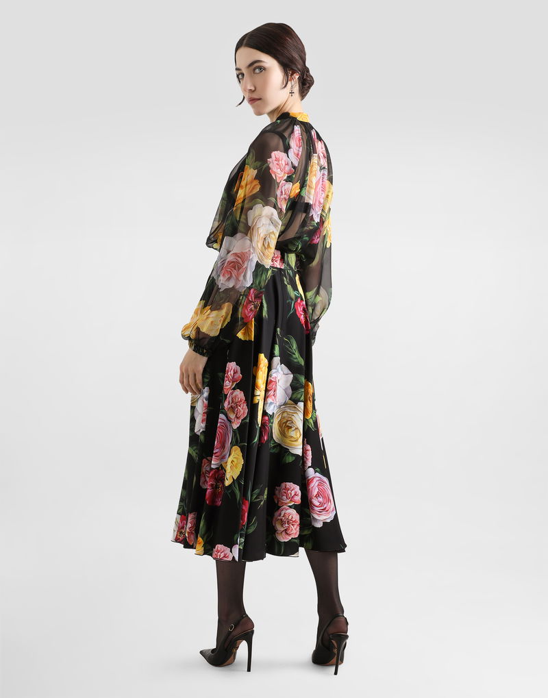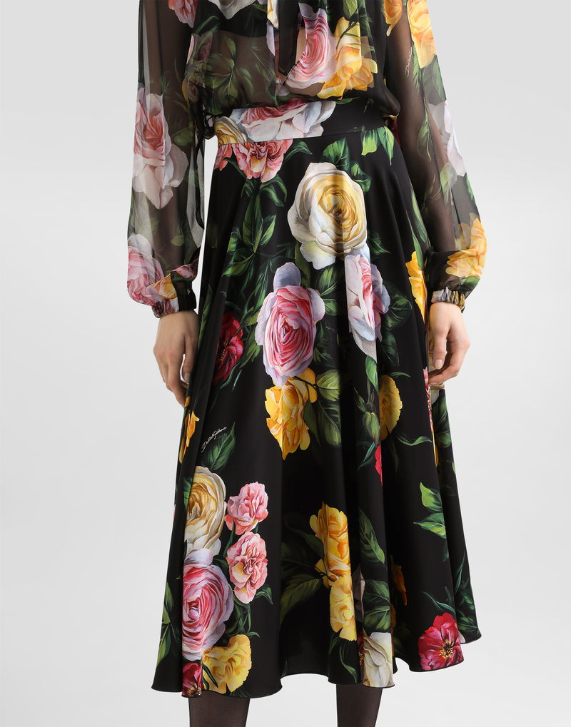 Peony And Rose-print Charmeuse Calf-length Circle Skirt