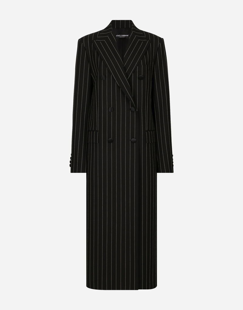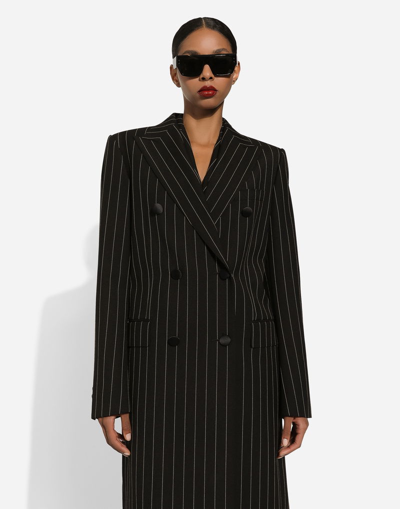 Pinstripe Double-breasted Coat In Woolen Fabric