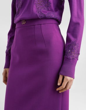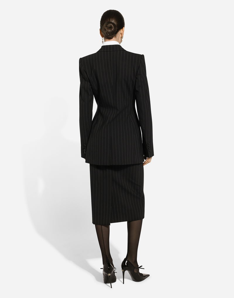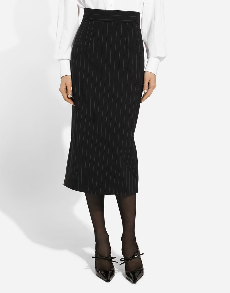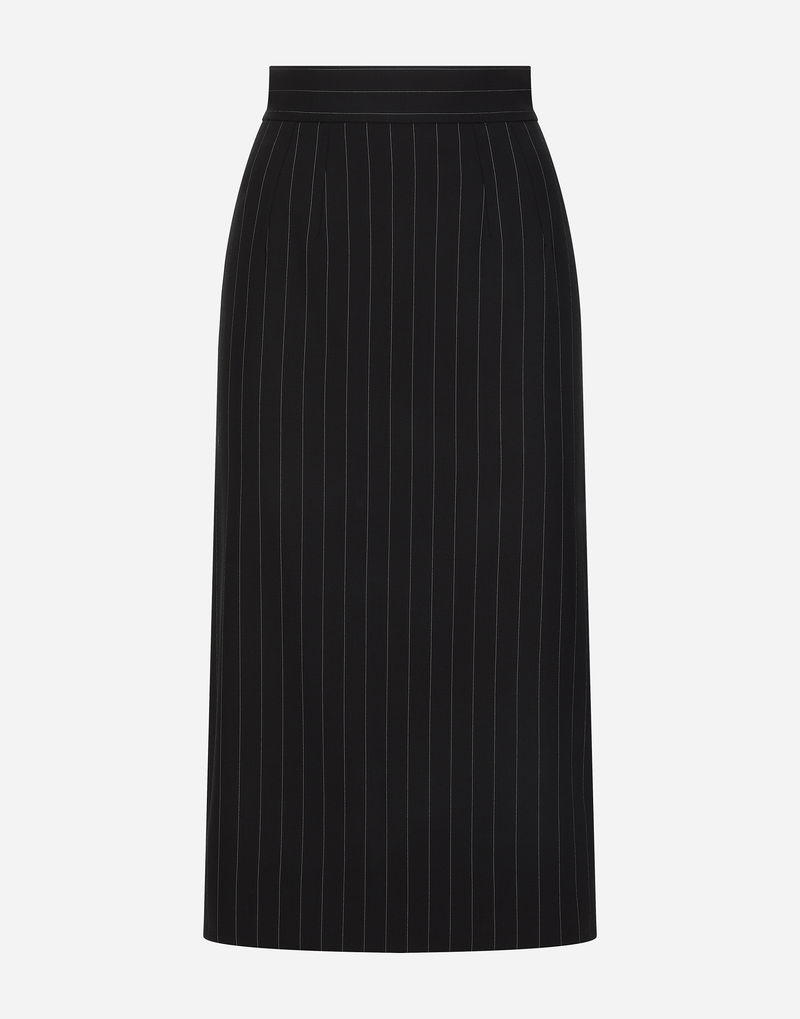 Pinstripe Wool Calf-length Skirt