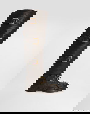 Set your sights on Italian elegance with styles from Dolce&Gabbana's Exclusive Portofino Collection for Mytheresa. These over-the-knee boots are designed with pointed toes and black and white stripes that perfectly pair with the collection's Portofino-inspired ready-to-wear.