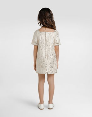 Explosions of color, adorable characters and cheery motifs abound in the Dolce&Gabbana Kids collection. Made from brocade, this dress features an ornate print, mixing golden and vibrant red tones, as well as the brand's signature DG logo.