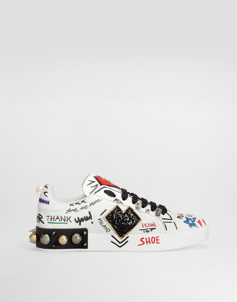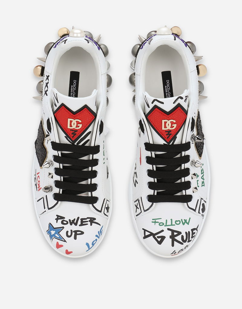 Printed Calfskin Portofino Sneakers With Patch