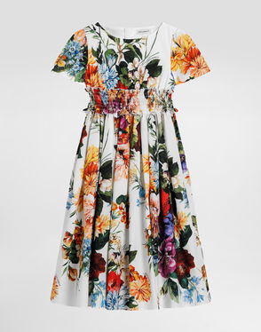 Explosions of color, adorable characters and cheery motifs abound in the Dolce and Gabbana Kids collection. This dress is crafted from cotton poplin and features a gathered skirt and an ornate all-over print.