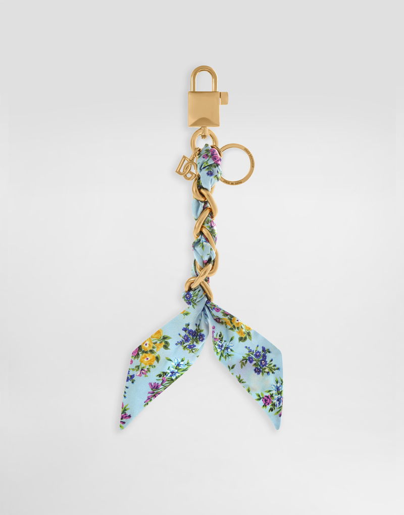 Printed Satin keychain: Multi-colored Carabiner closure Vintage brass plating External customization with monogalvanic plate Item equipped with a logo bag and a logoed box Length: 21 cm Made in Italy The difference in the print placement that you may find on this product is a feature of Dolce & Gabbana’s “Handmade” pieces. A detail that makes every garment or accessory unique and exclusive.