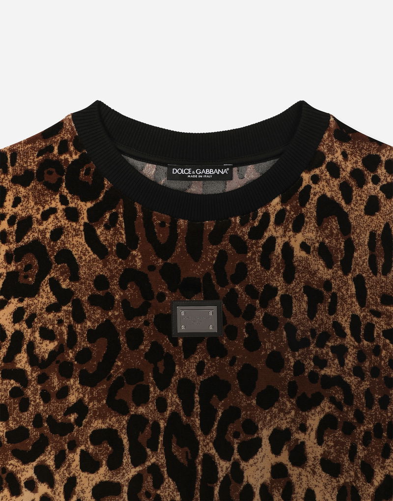 Round-neck Chenille Sweatshirt With Jacquard Leopard Design
