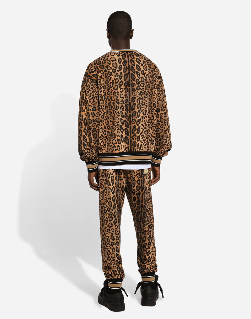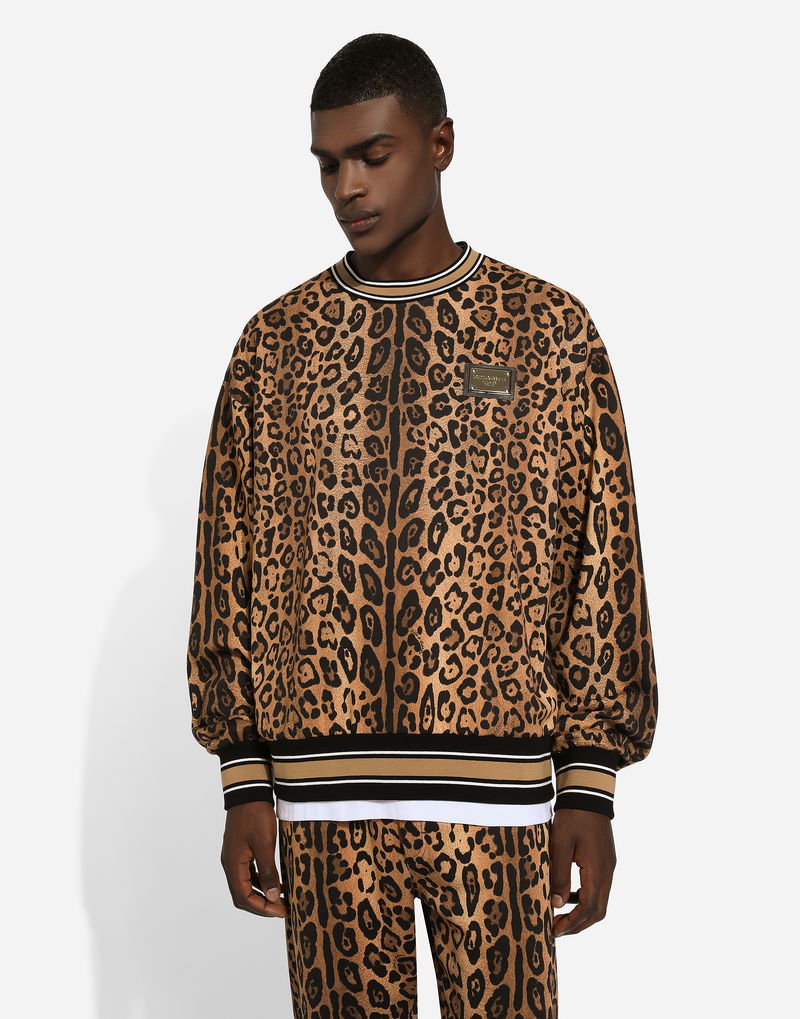 Round-neck Sweatshirt With Leopard-print Crespo And Tag