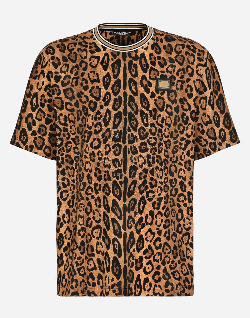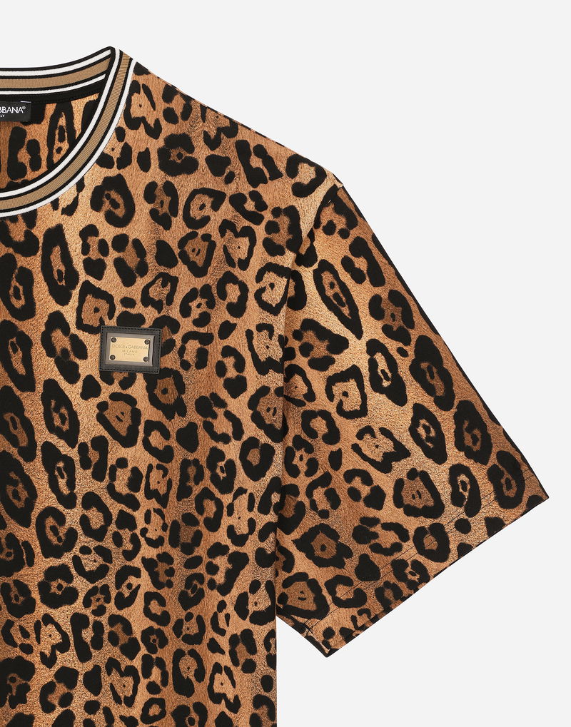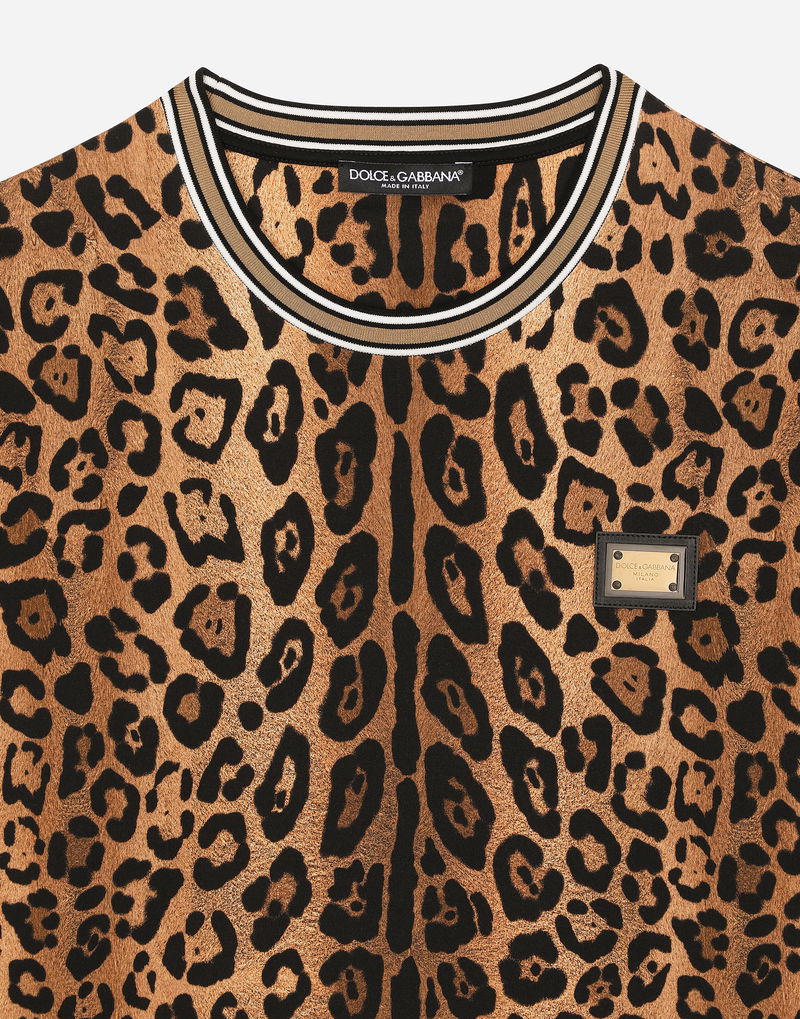 Round-neck T-shirt With Leopard-print Crespo And Tag