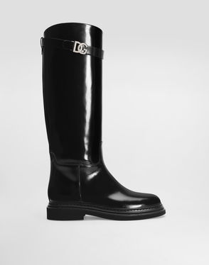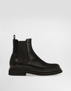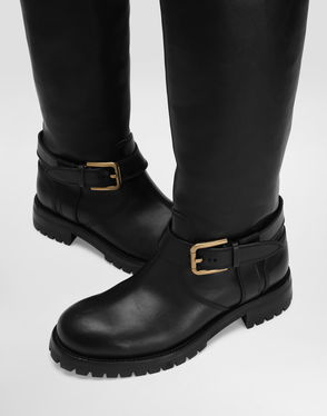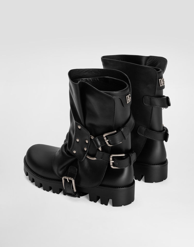 Rubber and calfskin ankle boots: Black Bernini shape TPU outsole Leather insole Latex fussbett insole wrapped in leather customized with label Customization with DG crossed logo Ruthenium plating Item equipped with black Cotton bag and black embossed box Made in Italy