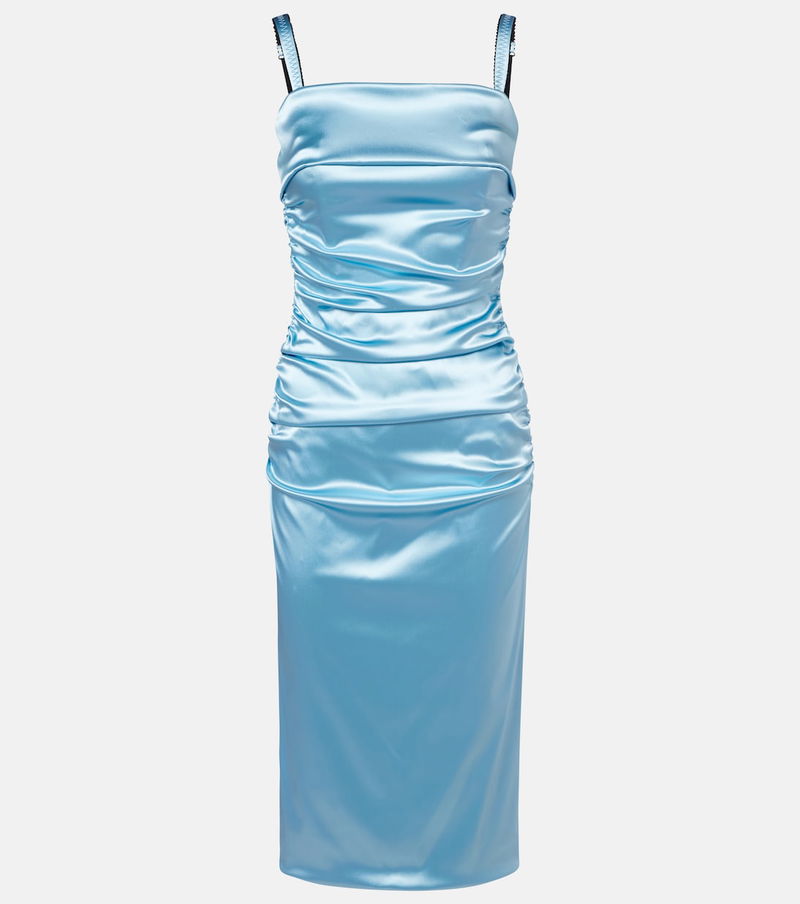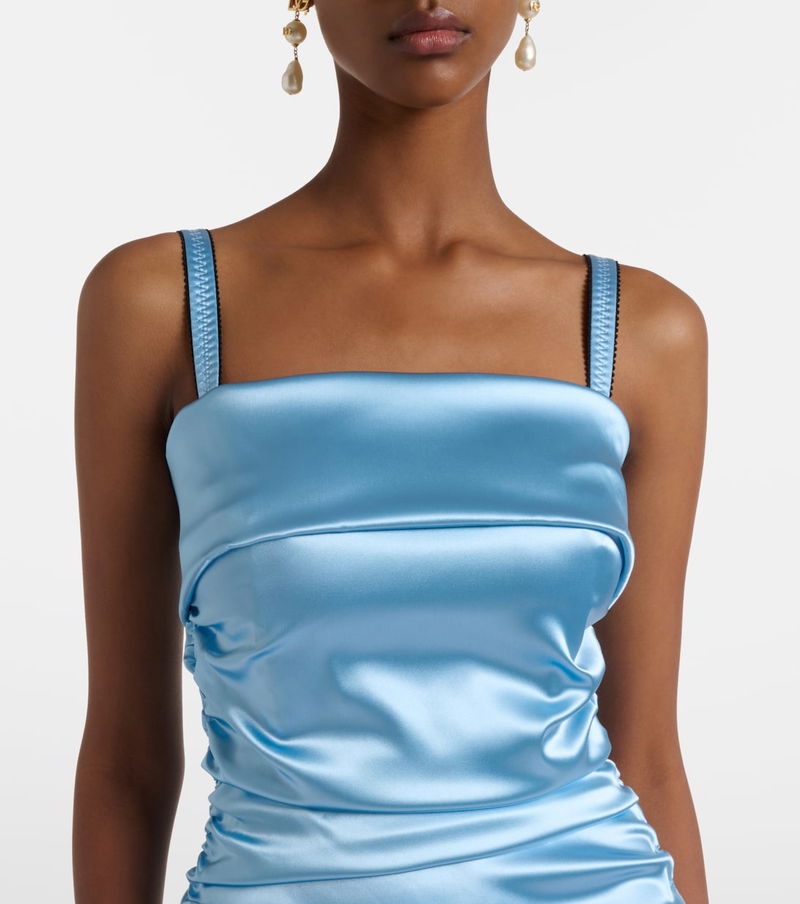 Make an entrance at your next event with this luminous cocktail dress, crafted from glossy satin with ruched details throughout.