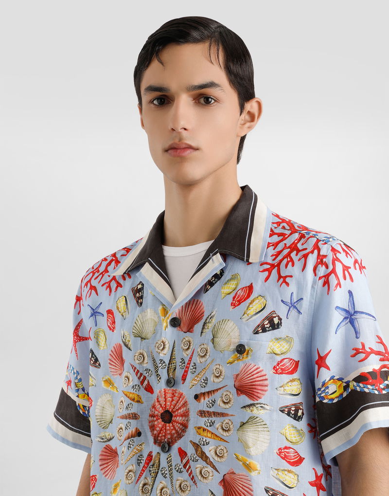 Shell-print Hawaii Linen Canvas Shirt
