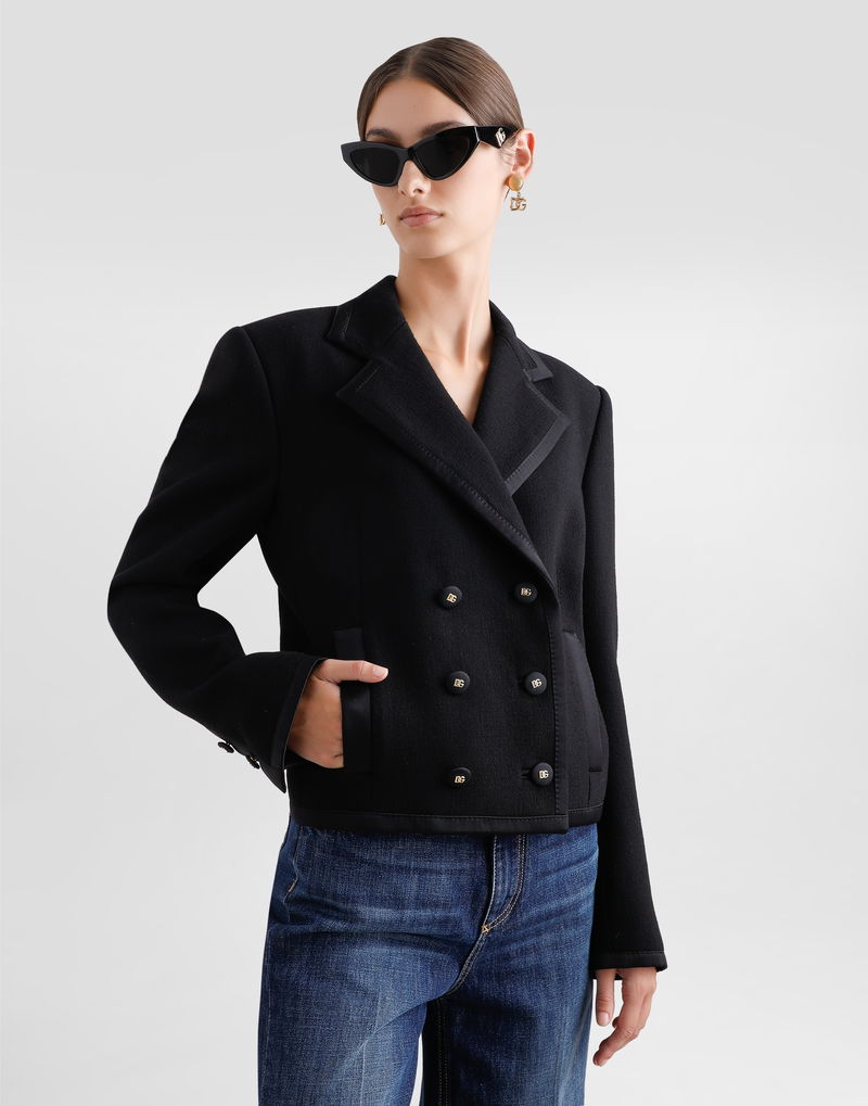 Short Double-breasted Wool Crepe Jacket