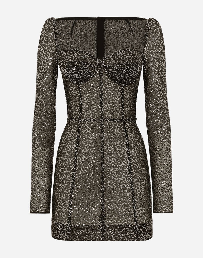 Short Long-sleeved Sequined Corset Dress