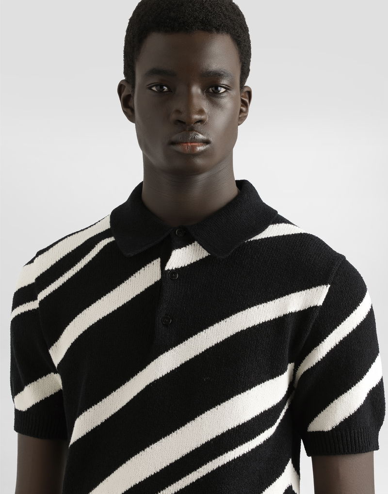 Short-sleeved Cotton Polo-shirt With Striped Inlay
