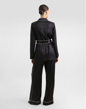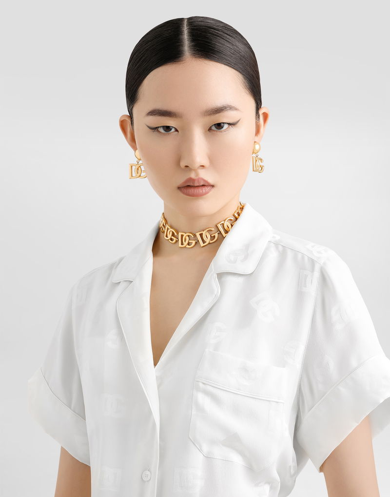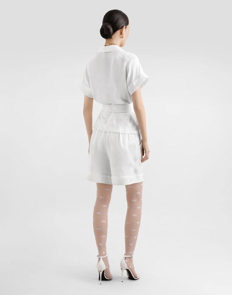 Short-sleeved Silk Satin Jacquard Pajama Shirt With DG Logo