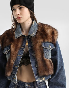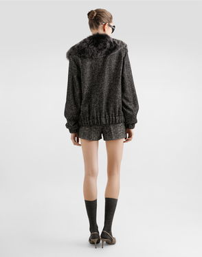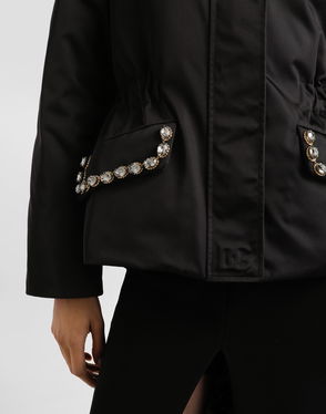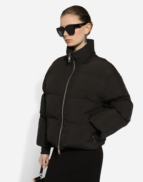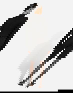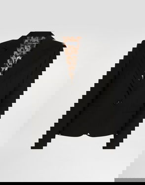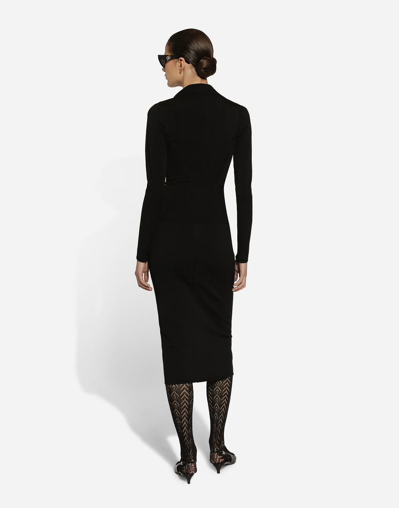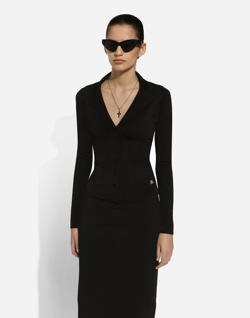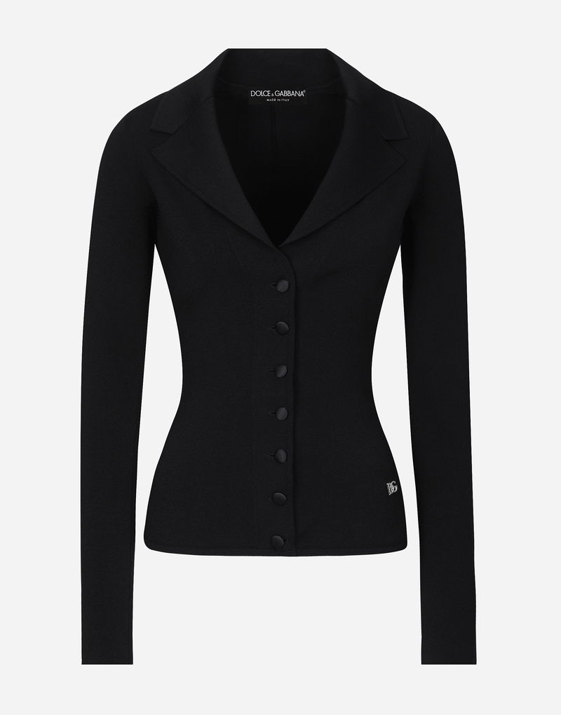 Short stretch viscose knit jacket with DG logo: Black Notched lapel collar 14-gauge knit Compact hand Form fitting Unlined Satin button fastenings The piece measures 58 cm from the shoulder seam on a size IT 40 The model is 175 cm tall and wears a size IT 40 Made in Italy